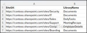 Instead of configuring each library individually, administrators can use PowerShell with a bulk import approach to apply draft item security across multiple locations in a single run. In this method, the required site URLs and library/list names are stored in a CSV file, and the script processes each entry automatically. This makes it easier to standardize configuration across multiple sites.