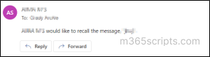 Important: When you recall message in Exchange Online, the recipient will receive a notification that you are recalling a message.